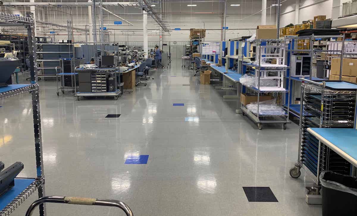 For this large project we provided turnkey installation (installed by JW Squire Co.) of an AmeriWorx conductive vinyl tile floor.