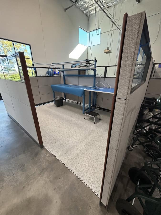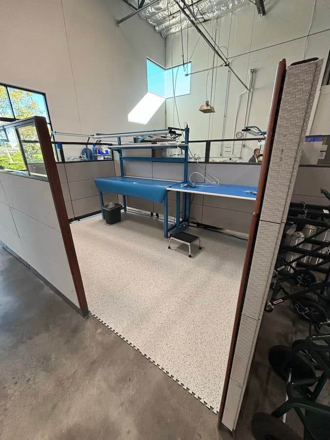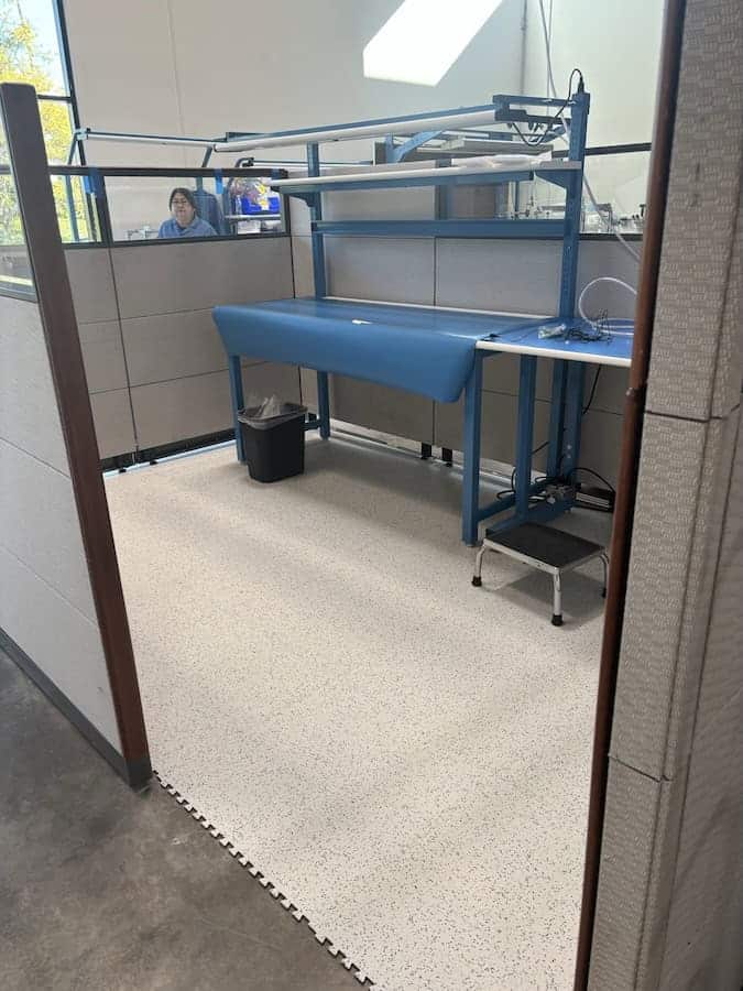 Synaptic Medical purchased GroundLock Extreme Interlocking tile for a warehouse space they were renting on a 3-year lease. They perform medical device assembly at benches within the space.