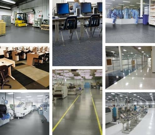 Static-free flooring is a type of flooring used to protect electronic equipment. It does this by eliminating static charges in the workplace. Many types of businesses use this type of flooring to protect their sensitive equipment. These include electronics manufacturing and handling facilities, critical call centers, flight towers, government offices, PSAPs, IT rooms, financial institutions and many others. Static-free flooring (also referred to as ESD or antistatic flooring) works by drawing static charges away from people and moving objects and dissipates charges to ground. Alone or used with static-control (ESD) footwear, static-free flooring also prevents static generation in the first place.
