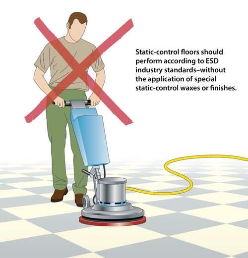 With static control, the idea is to discharge the built-up (static) charge to ground. Static cannot discharge through plastic or other insulative materials. An electrical charge can flow only between conductive objects. A person can wear a heel and/or wrist strap and sit on an ESD chair; if the floor cannot discharge static generated by friction—walking on the floor, moving in the chair—the charge cannot flow to ground. It has no way to get there.