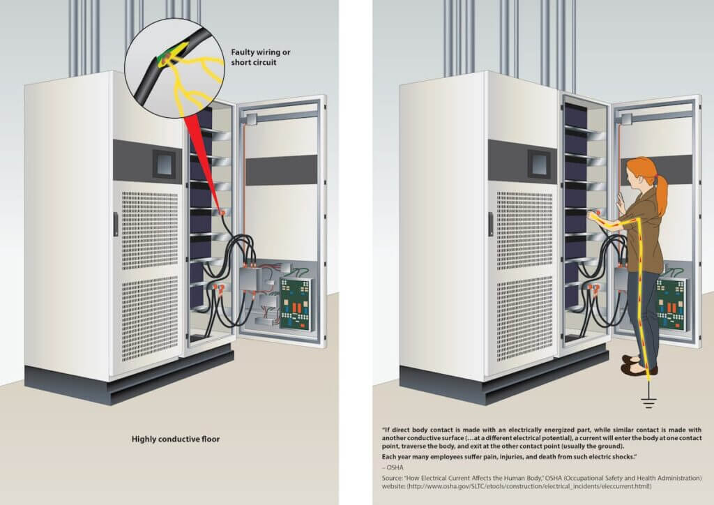 Current standards set by the telecom industry and Federal Aviation Administration—Motorola R56 and FAA 019f—prohibit flooring materials measuring under 1 x 10E6 in areas where energized equipment is in use. Both OSHA and the data center industry use the same number.