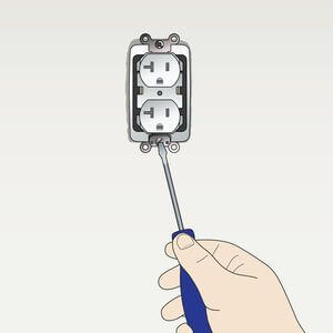 Remove center screw on cover of AC electrical outlet using a screw driver.