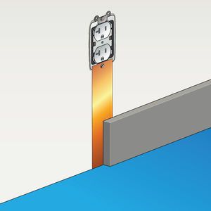 Allow 24″ copper strap to run down wall to subfloor (concrete, etc.).